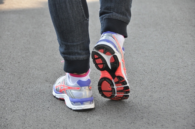 Ženski model Gel-Foundation je za nevtralno tekačico že malo pretirano stabilen, a mi to ni bilo odveč. Tekla sem počasi, osredotočena na dotik s podlago, ker pa je bil tako lep dan, sem tu in tam navdušeno visoko poskočila med lužami levo in desno.