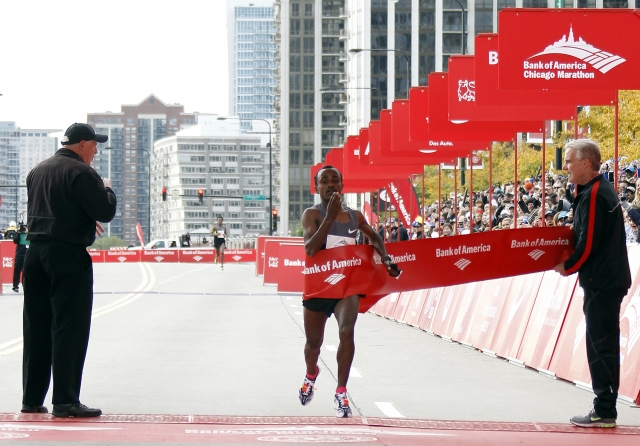 Na včerajšnjem 35. čikaškem maratonu so organizatorji sicer pričakovali hiter tek, za spremembo pa so bile vsaj pred začetkom oči javnosti uprte predvsem na