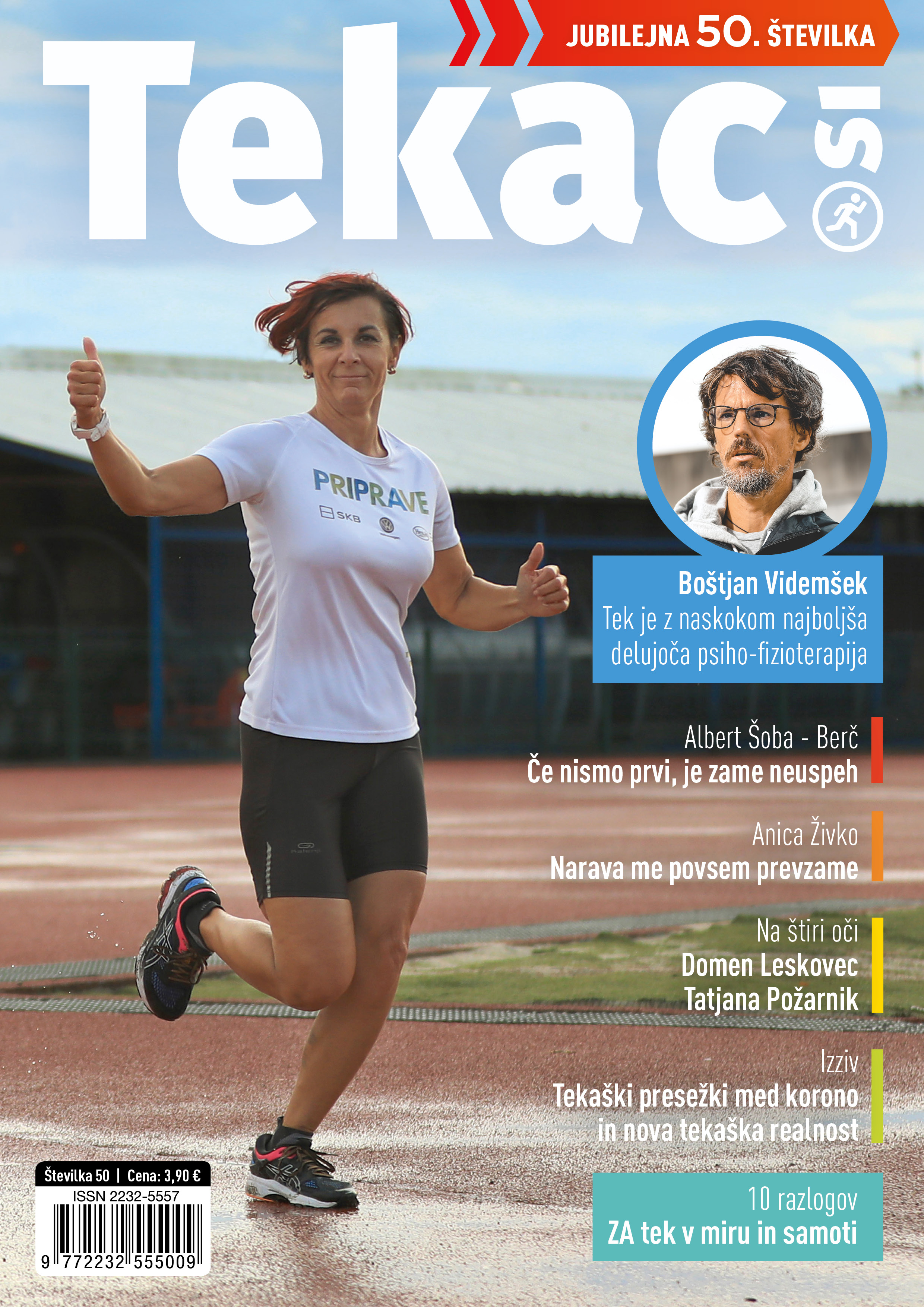 Zdaj že nekaj let zapored pripravlja družabne igre Hofer v brezplačni reviji Ferdo, ki je namenjena mladini, v njej pa so aktualne informacije, ki so tematsko obarvane skozi celotno izdajo, namenjene vsem. Aktualna številka (na sredini je tudi tokrat vpeta družabna igra) je še posebej pritegnila mojo pozornost, saj je preprosto predstavljen celoten postopek, kako nastane knjiga. Zajeta je vsebinska zasnova in tehnična izvedba. Koraki, ki jih je treba izpeljati tudi za vsako izdano revijo. Vsi ti predstavljeni koraki so bili opravljeni tudi pri tokratni jubilejni, petdeseti številki Tekac.si, z veliko pozitivnega nemira pri zaključevanju. Pri vsebinski pripravi je bilo prijetno obuditi spomine, koliko sogovornikov smo predstavili in predvsem, koliko izjemnih ljudi smo imeli možnost v vsem tem času spoznati. Različnih tem, o katerih smo se razpisali in so neposredno ter posredno povezane s tekom, je bilo res veliko. Pri nastajanju vseh teh vsebin z različnih področij je sodelovala za eno veliko tekaško skupino obsežna ekipa avtorjev, ki so dodali nepogrešljiv del k nastajanju kakovostnih vsebin. Najbolj zanimiv delček podatkov je zbran in predstavljen v infografiki petdesetih številk, v uvodu pa je prikazan meni osebno zelo prijeten pogled na vse zbrane naslovnice, ki ponazarja tako vsebinski kot tehnični razvoj revije.