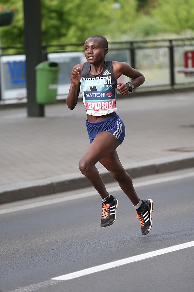 "Zelo sem zadovoljna za današnjo zmagi in svetovnim rekordom. Že na štartu sem se osredotočila nanj, med tekom mi je bilo precej težko, " je po tekmi povedala Jepkosgeijeva, ki je začela zelo hitro. Polovico proge je pretekla v 14:32, kar je najboljši izid vseh časov na pet kilometrov na cesti (Mednarodna atletska zveza na tej razdalji ne beleži svetovnih rekordov).
