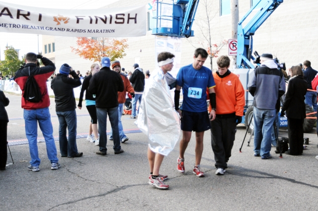 Normalna telesna temperatura znaša 37 stopinj Celzija in s takšno maratonec običajno – če le ni bolan že na samem štartu – prične s tekom. Med maratonom temperatura narašča in na koncu preseže 38,5, včasih pa tudi 39 stopinj, pravi Mark Perazella, profesor medicine na ameriški univerzi Yale. Po prihodu v cilj se znoj na telesu ohladi, telesna temperatura se hitro zniža, kar lahko privede do podhladitve. Zato se nekateri maratonci po prihodu v cilj ovijejo v odeje.