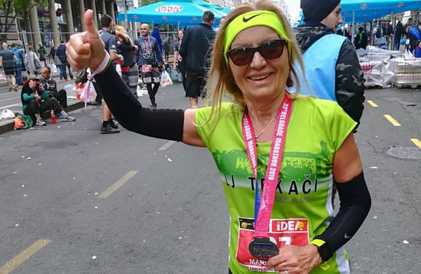 Sem rekreativka, zato rezultatov ne štejem. Odkar sem začela trenirati tek – približno 7 let nazaj, začela sem aktivno zelo pozno – sem pretekla že 3 maratone. Kot prvega sem si zamislila Atene, za svojo okroglo (beri 66 let), v avtentičnem okolju. In uspelo mi je. Tudi rezultat je bil zame zadovoljiv, čeprav pravim, da rezultatov ne štejem. Drugi maraton je bil ljubljanski; pred dvema letoma, kjer sem bila celo prva v svoji kategoriji (ni bilo veliko tekačic), ampak pomemben mi je bil pokal, ki sem ga dobila za prvo mesto na maratonu. Tega verjetno ne bom imela več priložnosti dobiti, glede na leta. Letos pa sem odtekla še maraton v Beogradu s svojima hčerama dvojčicama, saj sem si res želela enkrat teči z njima maraton. Bilo je enkratno doživetje, tudi tega maratona ne bom pozabila. Drugače pa najraje tečem polmaratone. Nekaj sem pretekla tudi desetk, a polmaratoni so mi ljubši.