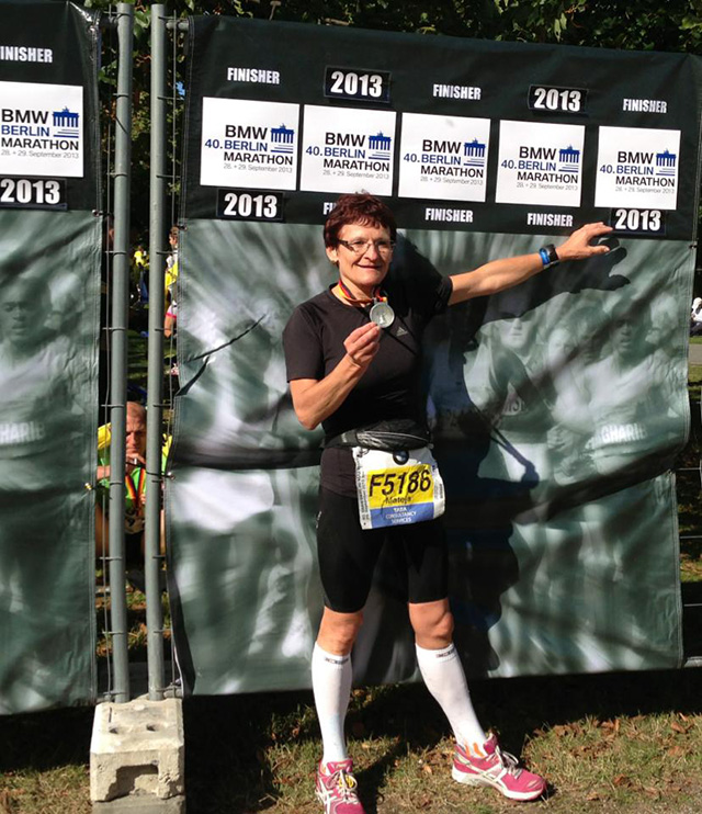 Sicer pa sem zaposlena v računovodstvu v Mercatorju. Pri delu veliko sedim, zato popoldne še raje obujem superge. Sicer pa delo rada opravljam. Imam pa do do upokojitve le še pet let, tako, da bom potem imela še več časa za tekaške podvige in pa za vnuke.