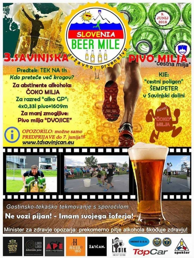 Vse skupaj se bo začelo z enournim pred tekom, ki se bo nato nadaljevalo v tekaško "dirko ". Za abstinente so pripravili "čoko miljo ", za tiste malo manj zmogljive "dvojice " in za težkokategornike "Alko GP". Za gorivo bodo poskrbeli s pivom Haler.