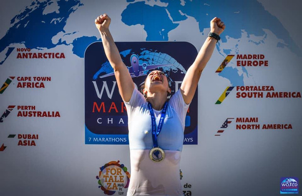 Na izzivu, kjer tekači v sedmih dneh pretečejo sedem maratonov na sedmih različnih celinah, je prvič zmagala tekačica z zavidljivim povprečnim časom maratonov.