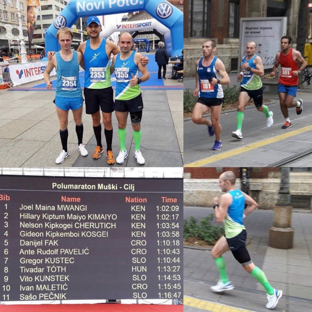 Navzlic bližajočemu se največjemu slovenskemu tekaškemu prazniku so se nekateri posamezniki odločili za nastop na zagrebški prireditvi. Še največ Slovencev je nastopilo na moškem polmaratonu, kjer so dosegli dve uvrstitvi v deseterico. Gregor Kustec je bil z rezultatom 1;10:47 sedmi, dve mesti in dobre štiri minute za njim je bil Vitko Kustec (1;14:55). Kot naslednji Slovenec se je na enajsto mesto uvrstil Sašo Pečnik (1;16:48), ki bo, sodeč po objavi na facebooku, konec meseca nastopil še na maratonu v Frankfurtu.