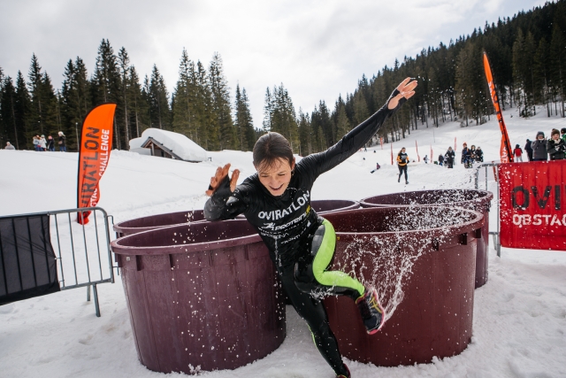 Prva presenečenja so se začela že nekaj sto metrov po startu. Kot da Frontlab piramida, po kateri se je bilo treba povzpeti s pomočjo vrvi, še ni bila dovolj za dvigovanje srčnega utripa, se je bilo treba proti naslednji oviri zapoditi čez več metrov visok kup snega. Sledil je Proteini.si pokljuški prelaz, pri katerem so se oviratlonci preizkusili, kako dobri so pri udejanjanju vrednot, kot sta medsebojna pomoč in sodelovanje. Čez steno, postavljeno pod kotom 45 stopinj, gre namreč veliko lažje, če si oviratlonci priskočijo na pomoč. Tretja ovira je bila dober opomnik, da je oviratlon še kako zabaven. Prijatelja iz ekipe ali novega znanca s proge na ramena in, hop, gremo štuporamo! Pri četrti, kurji lestvi, ki je bila tokrat premierno na zimski preizkušnji, pa sta bila na preizkusu koordinacija in ravnotežje pri lazenju čez prečke. Nato pa tradicionalni suhi in vitki – cevi, ki jim nekateri pravijo tudi premagovalci klavstrofobije. So namreč ravno dovolj široke, da omogočajo gibanje oziroma plazenje, hkrati pa ravno pravšnje za premagovanje fobij, so zapisali organizatorji.